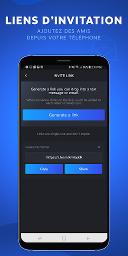 Liens d’invitation : ajoutez de nouveaux amis sur Steam avec un simple lien. Créez un lien d’invitation que vous pouvez envoyer par SMS ou e-mail.