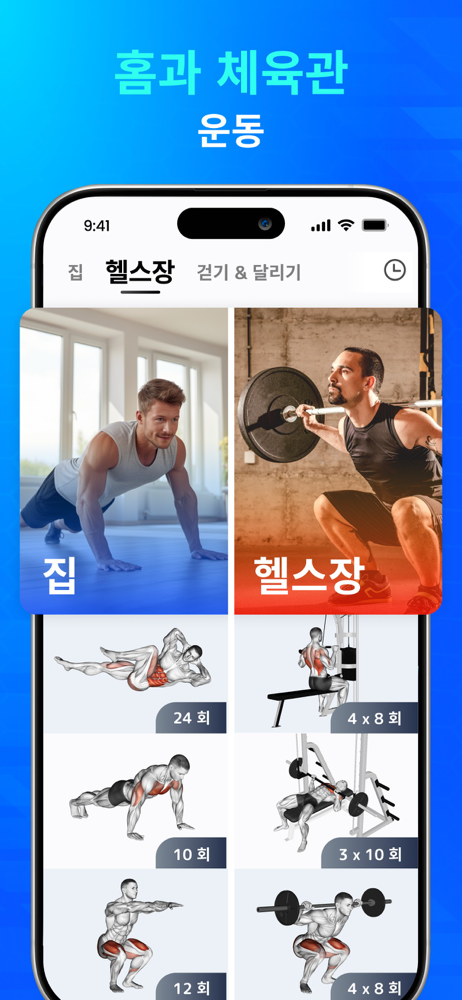 운동기구가 필요하지 않으니, 집에서, 헬스장에서, 심지어 야외에서 언제 어디서나 운동할 수 있어요.