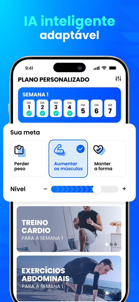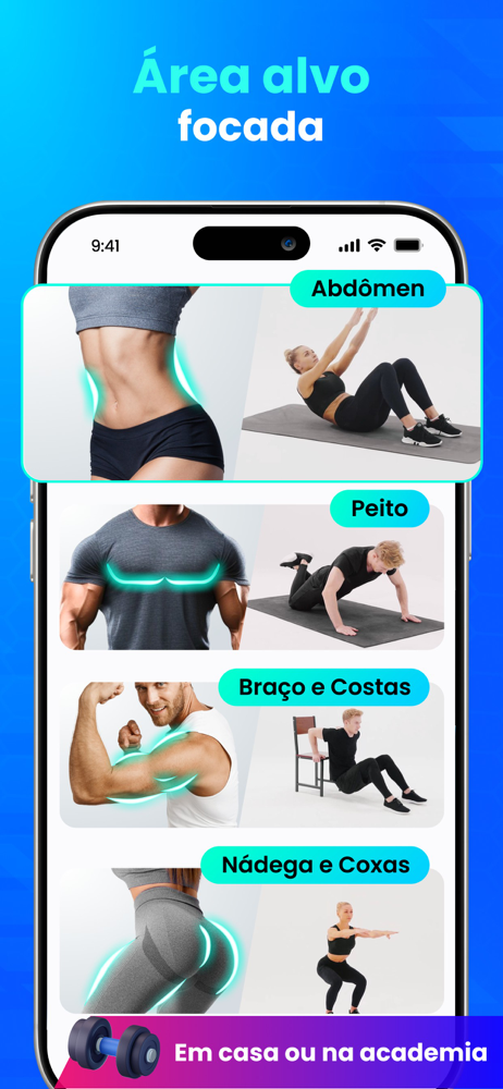 • Plano Personalizado só para você: Adaptado aos seus objetivos de fitness e áreas de foco, para obter resultados mais rápidos.